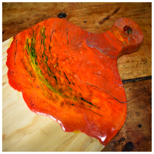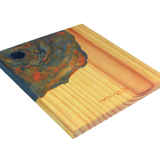 Tabla de Picoteo Artesanal Diseño Resina 25.5 x 23 cms.