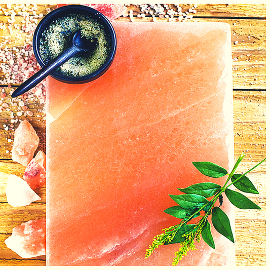 Tabla de Sal del Himalaya Rectangular con soporte y línea de jugos